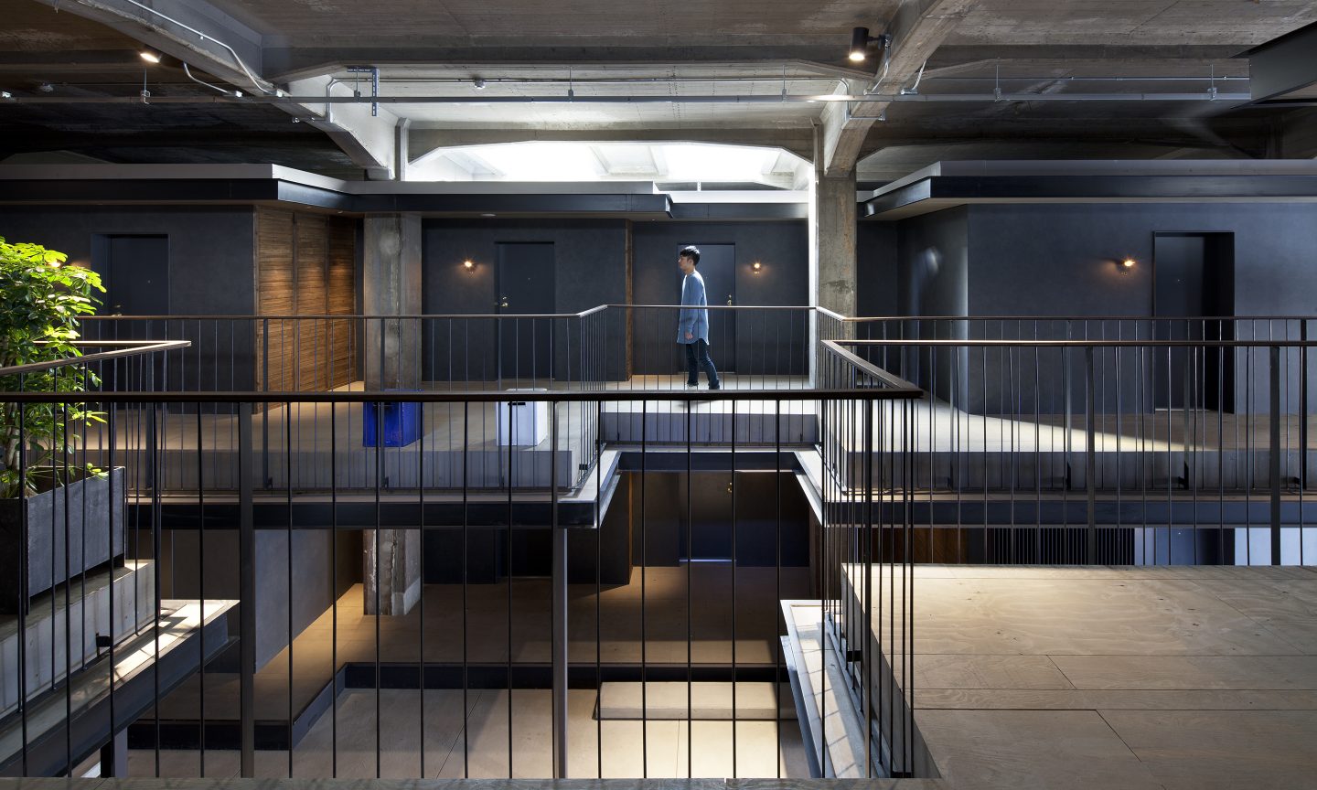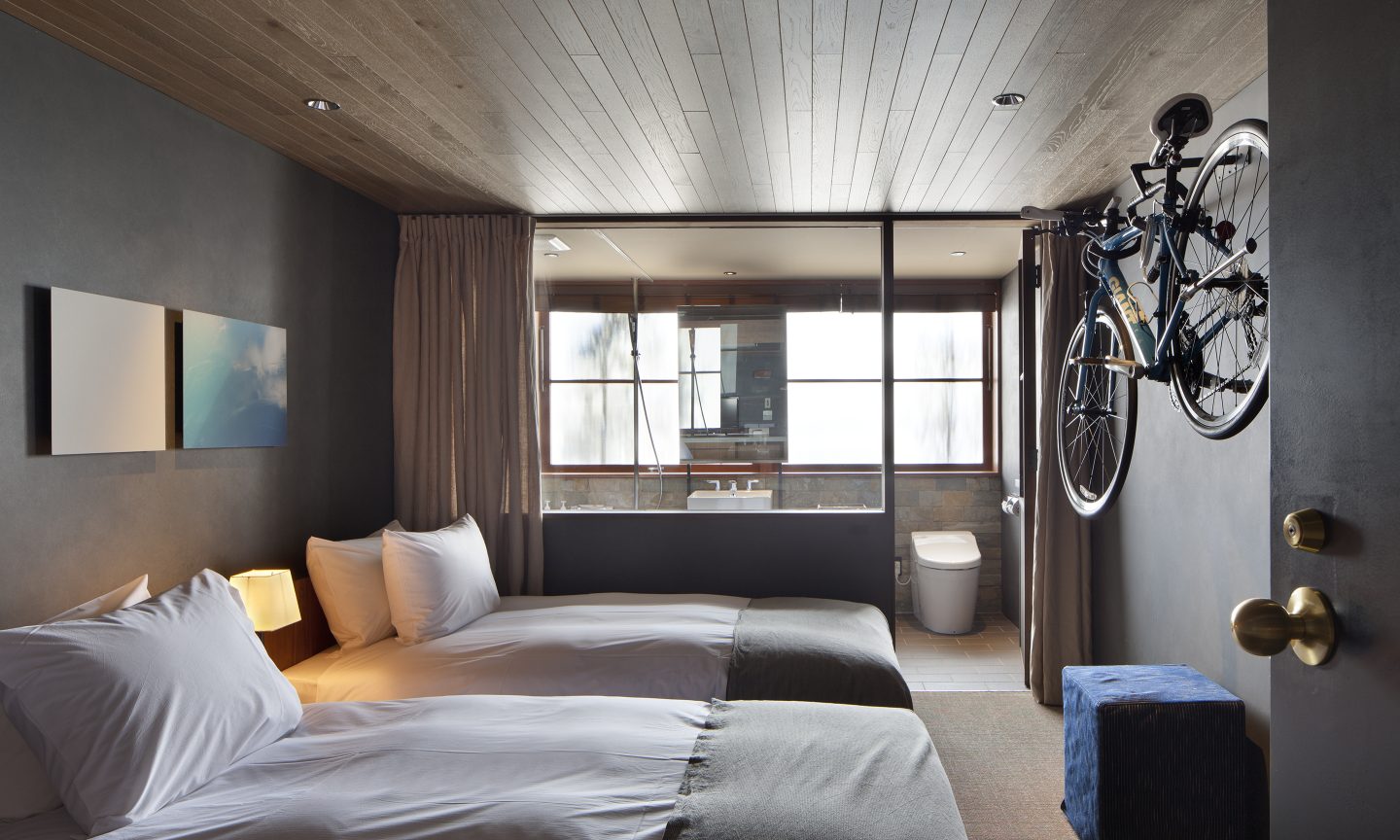小さな古民家が密集する尾道の街並みのように「小さなスケールの連続と路地」という関係を継承し、自転車のリペアを行う路地、地元住民やトラベラー同士の情報交換の場となる縁側を配し、建物全体を「街」と見立て、人々の関わりを生むきっかけを散りばめた。