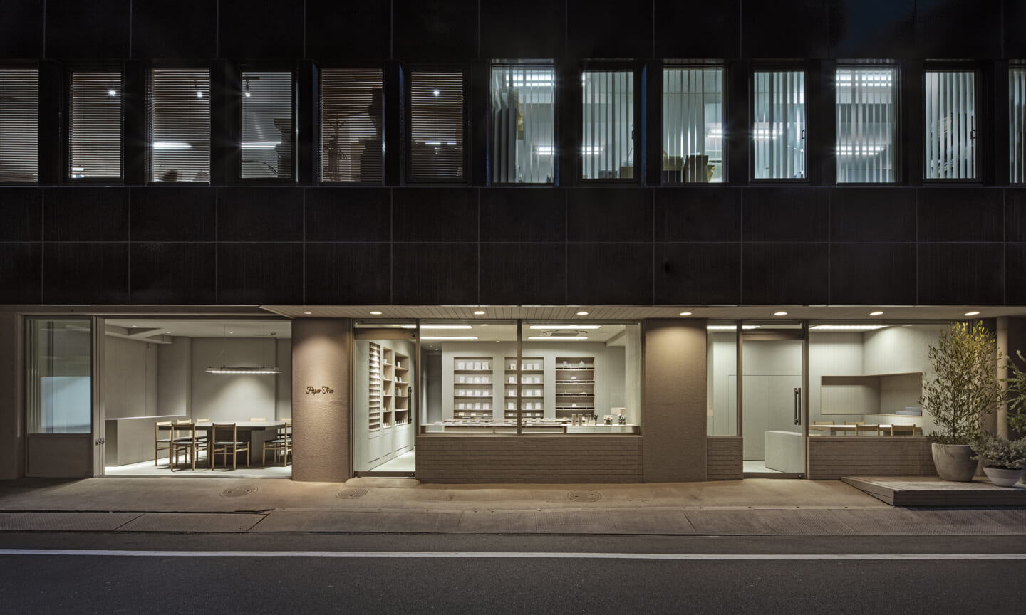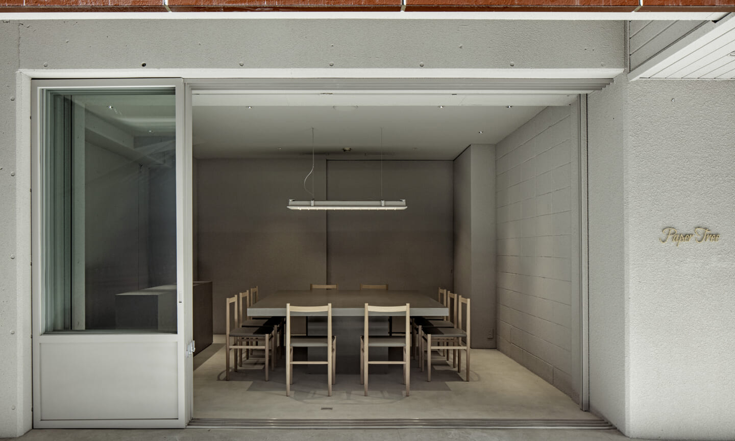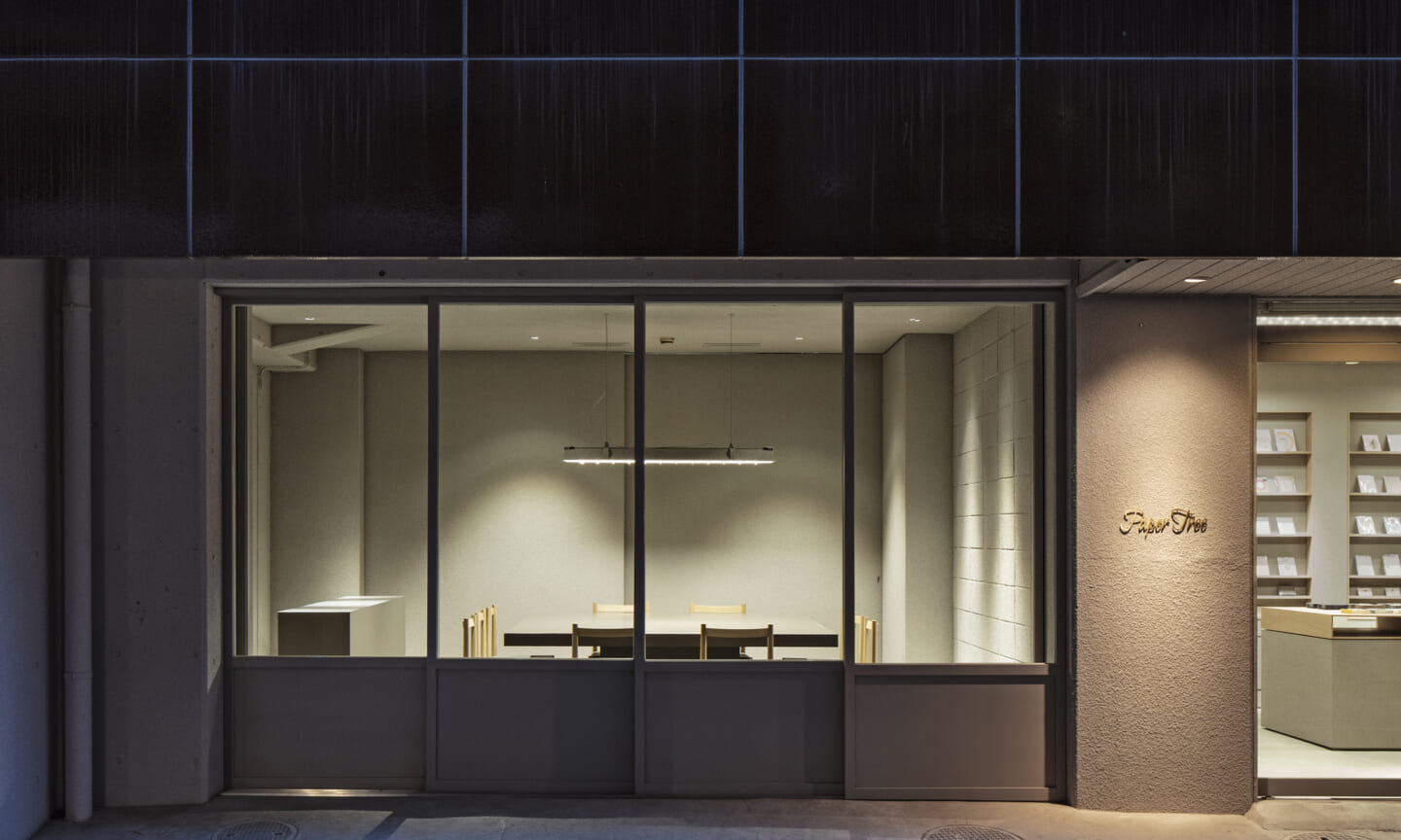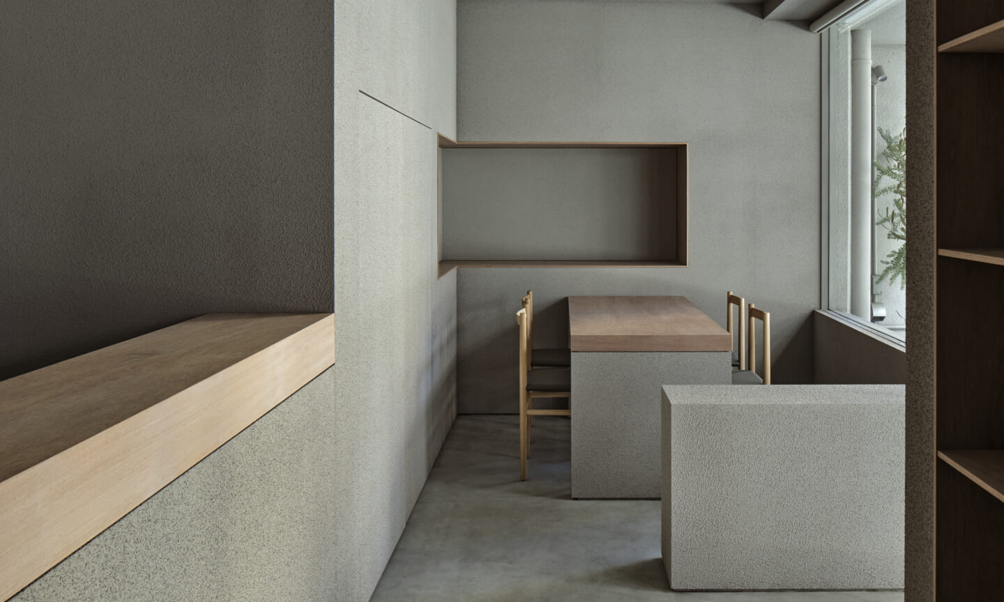 一方、本計画はカリグラフィー用品や紙製品、文具などを扱う店舗である。ペンの書き心地や紙の質感といったわずかな差異に向き合うためには、都市の中で閉じかけた感覚を、ニュートラルな状態へ戻す環境が必要だと考えた。加えて、和洋いずれの製品も受け止める背景としての空間が求められた。