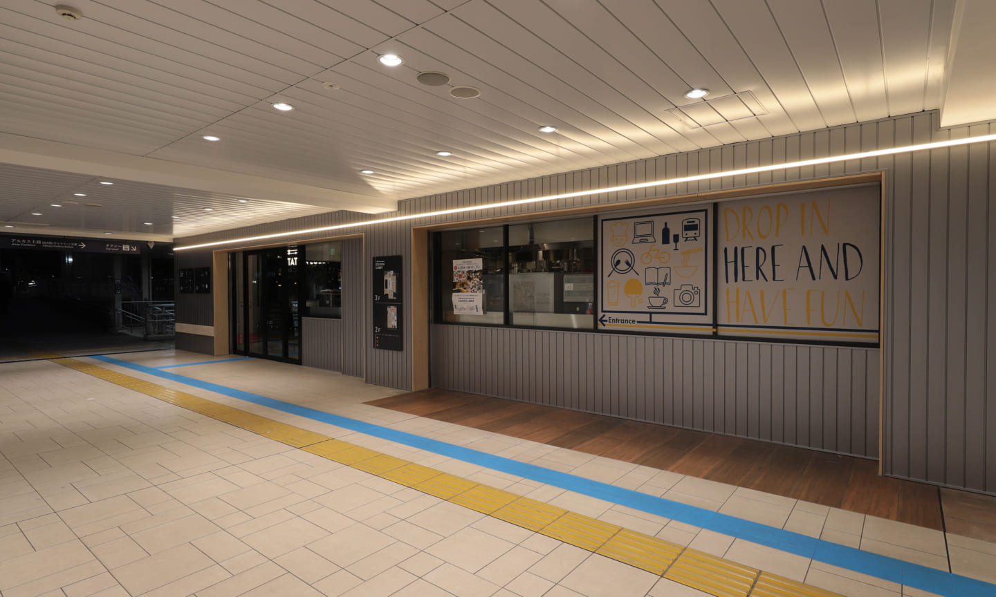 街の特徴である豊かな自然やサイクリングロードのモチーフを抽象化した外観のデザインも含め、この街や駅がどんな場所でどんな楽しみ方が出来るのか。場に名前を付けることやアイコン化することで、文字情報ではなく絵で場を示すピクトグラムのようにそれぞれの場の特徴や使われ方を空間デザインにより可視化することを試みた。
