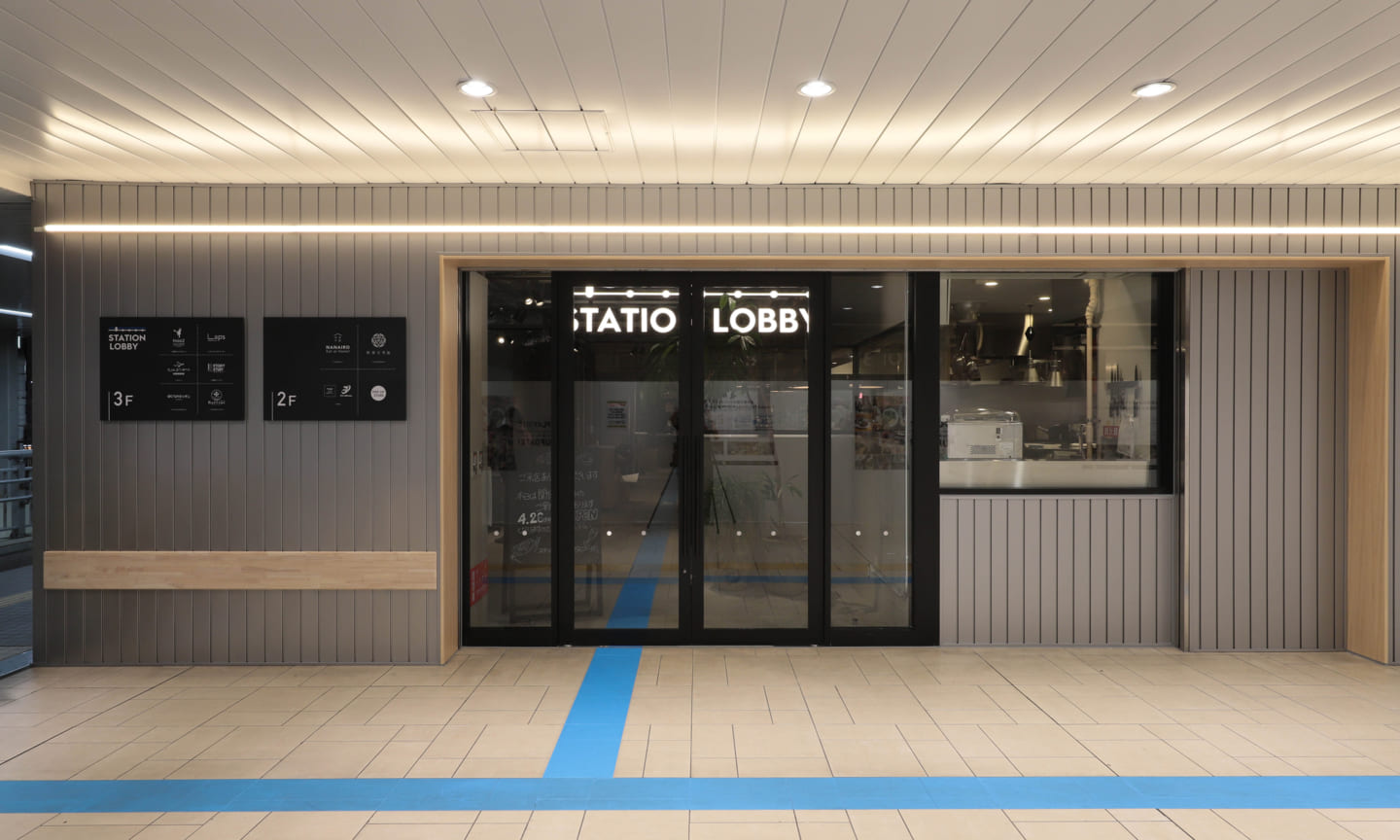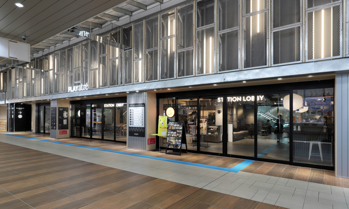 駅コンコースが直結し、サイクリングホテルのエントランス部も設けられる3Fフロアは街の顔であり、多くの人の流れを誘導する場として、エキスパンドメタルと照明による奥行きラインを強調した動きのあるデザインで高揚感と躍動感を表現した。