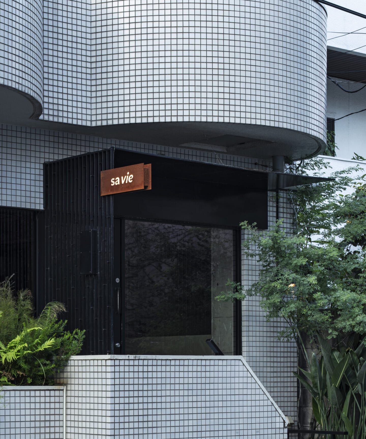 “食材を切る、焼く、炒める、味つける、盛り付ける”といった調理の過程にある火や音や香り、そして料理人の所作。鉄板フレンチ「Savie」では美味しい料理を提供するだけでなく、料理が完成するまでの風景や料理を待つ時間までを“味わい”と捉え“調理と食事”その二つの距離を近づけることで五感で楽しむプリミティブな食の体験のあるレストランを目指した。