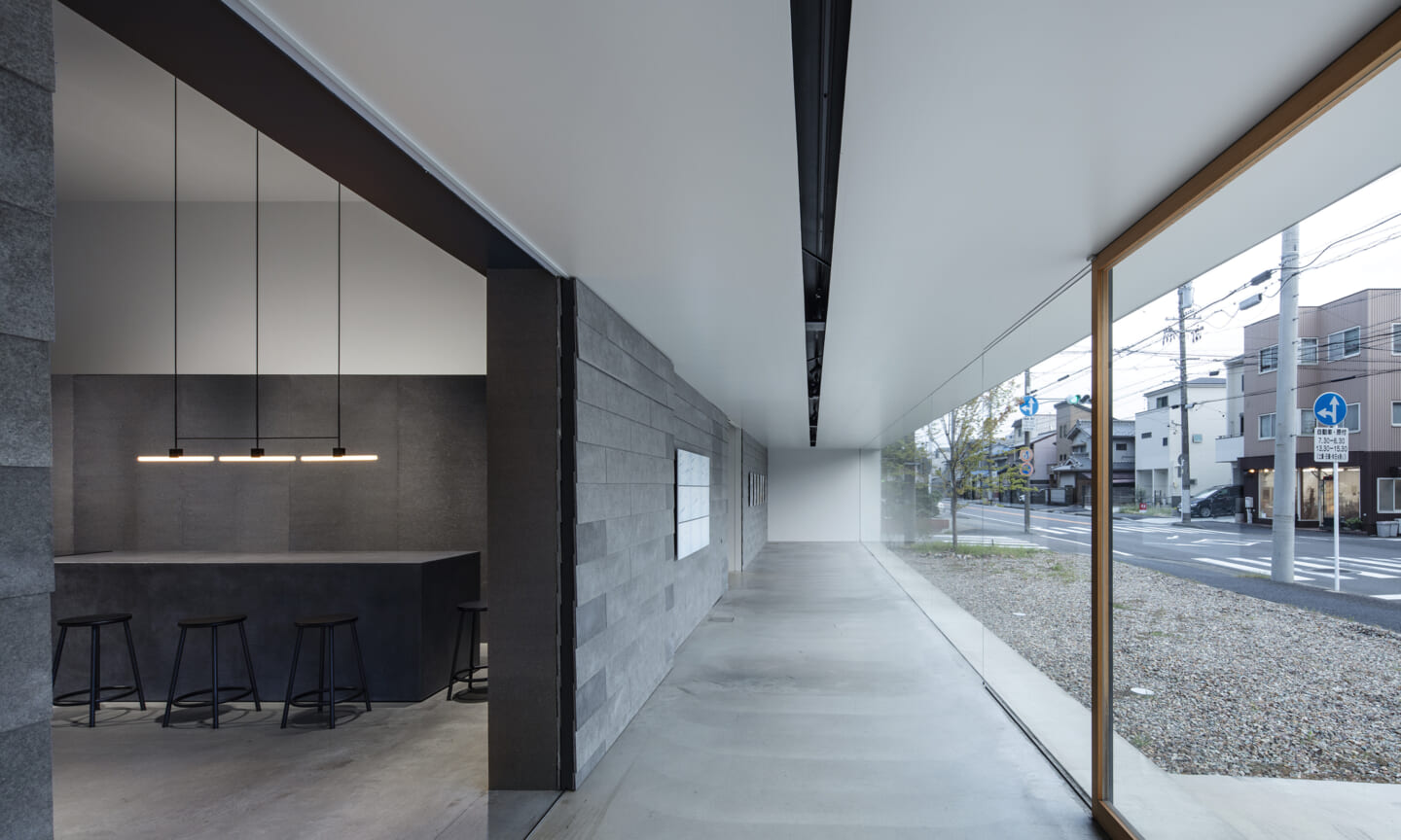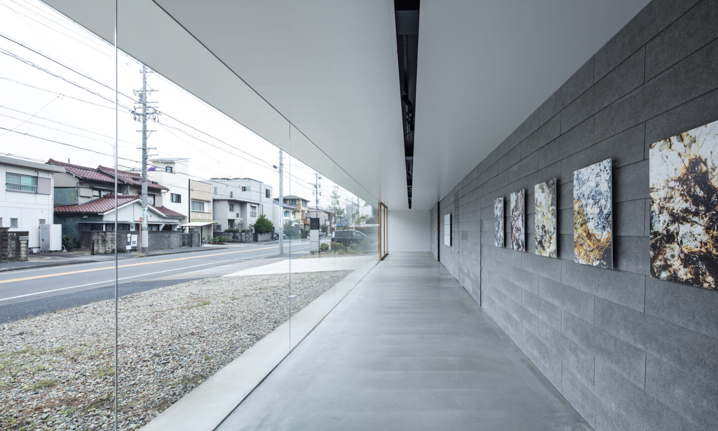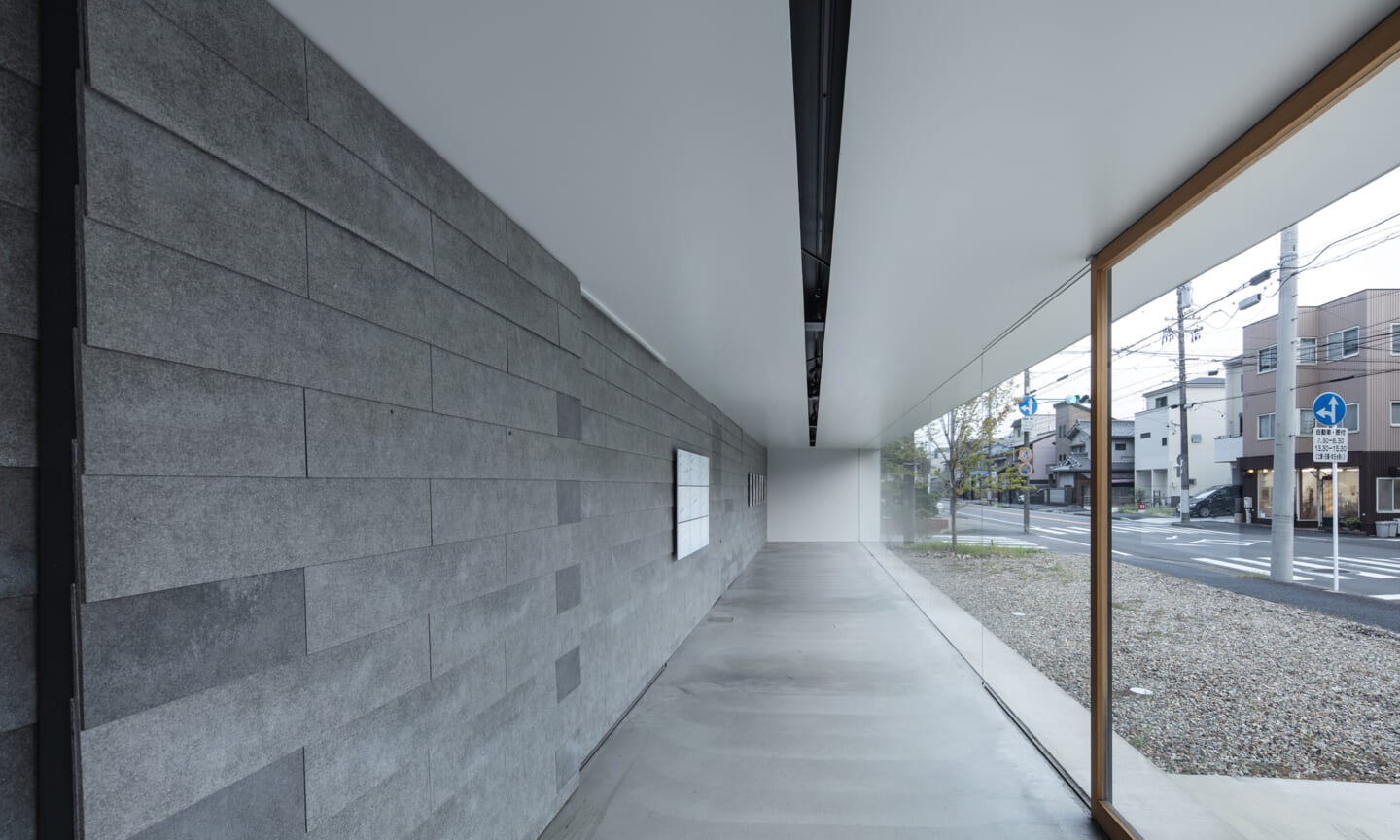 細長いギャラリー空間を配する