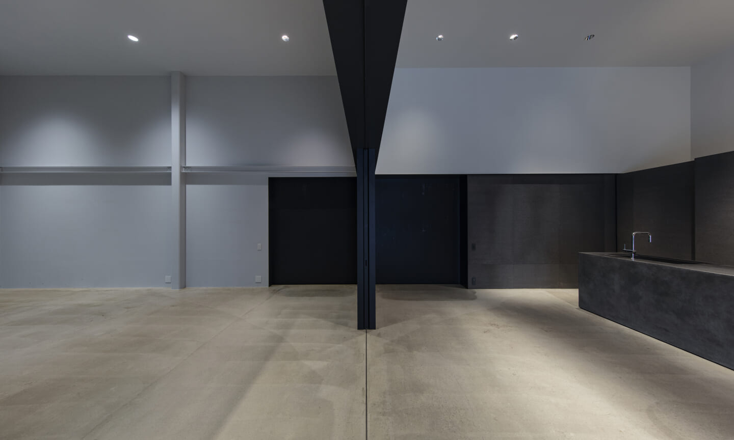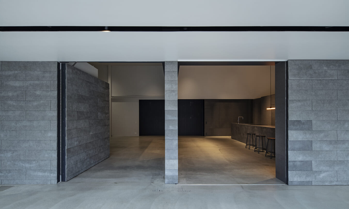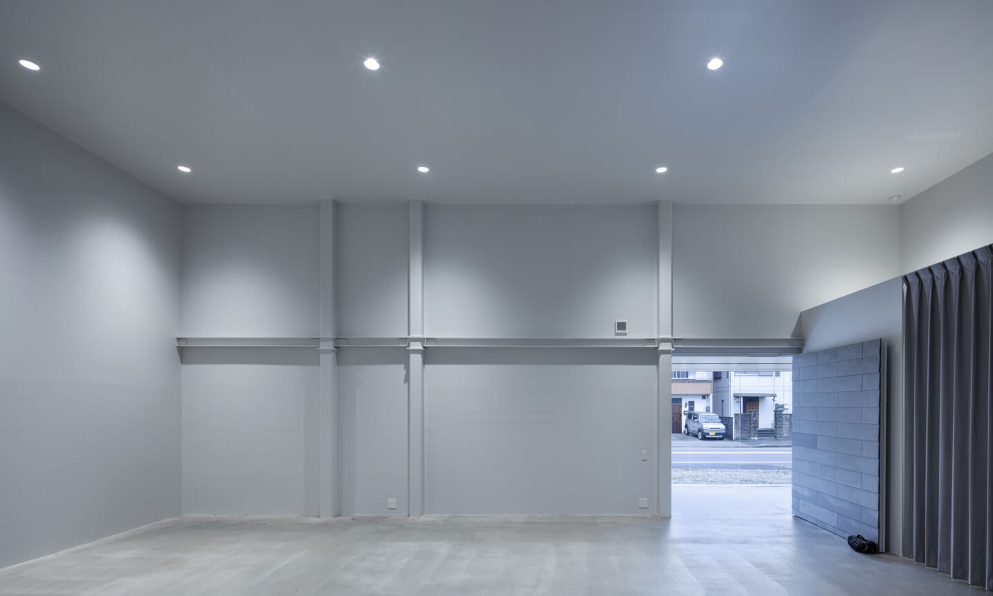 細長いギャラリー空間を配する