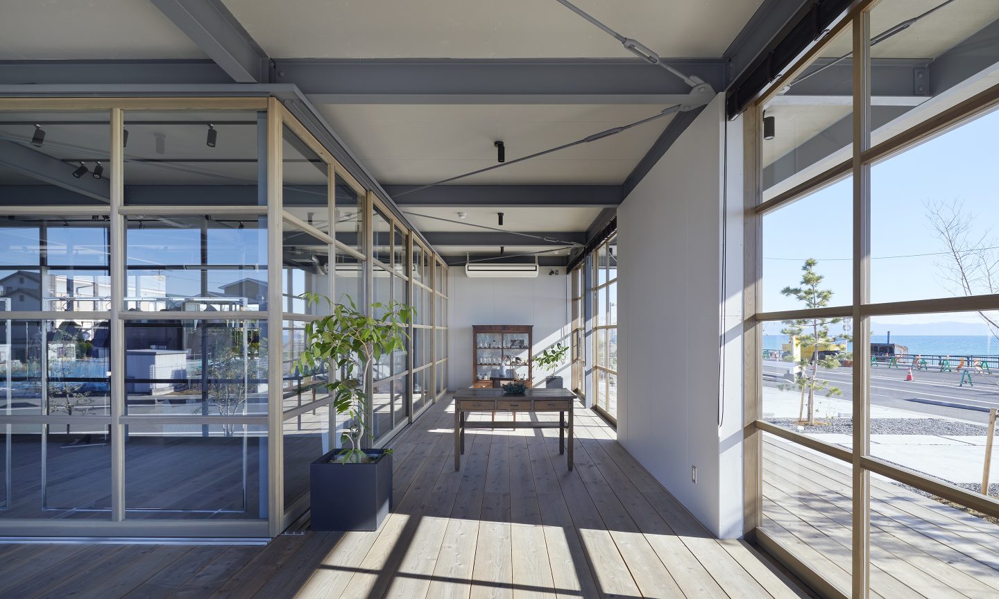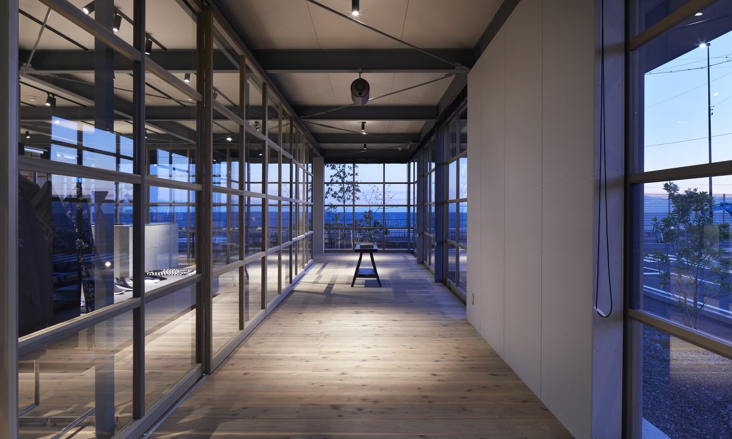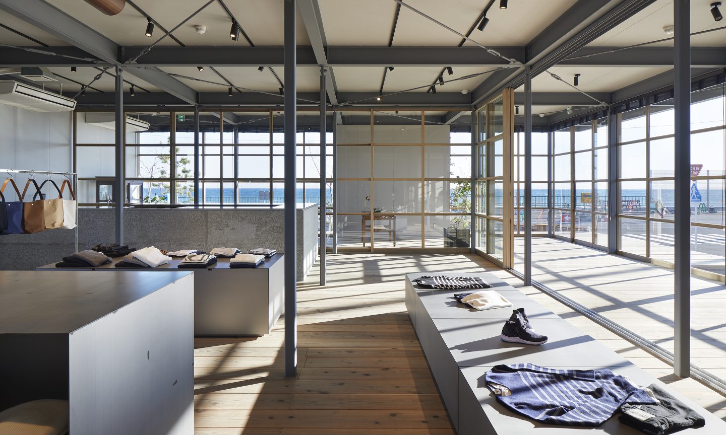 計画地は、駿河湾に面した海を望む場所である。海に面した絶好のロケーションであるにもかかわらず、この地域は人通りは少なく閑散としていた。この地域を知る人たちは、海に対する塩害や津波、台風などネガティブな要素を連想することが多い。そんなイメージを一新させるべく、クライアントはここに衣・食・住をトータルして提案する商業施設をつくることを計画した。ネガティブだった海に足を運んでもらえるような魅力をこの場所に求められた。