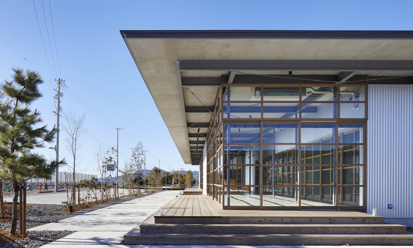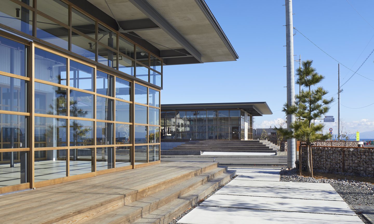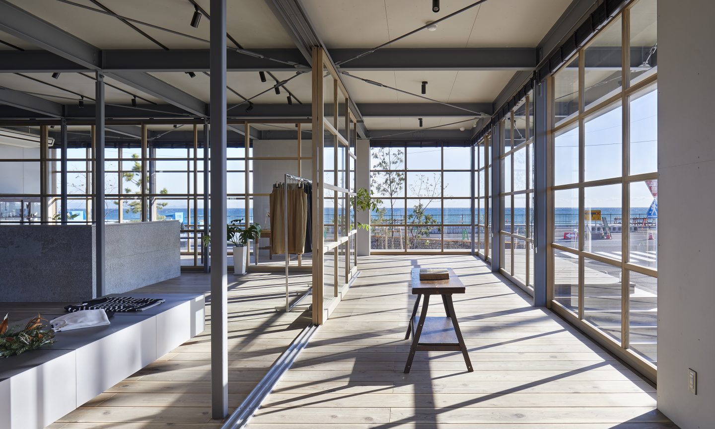 計画地は、駿河湾に面した海を望む場所である。海に面した絶好のロケーションであるにもかかわらず、この地域は人通りは少なく閑散としていた。この地域を知る人たちは、海に対する塩害や津波、台風などネガティブな要素を連想することが多い。そんなイメージを一新させるべく、クライアントはここに衣・食・住をトータルして提案する商業施設をつくることを計画した。ネガティブだった海に足を運んでもらえるような魅力をこの場所に求められた。