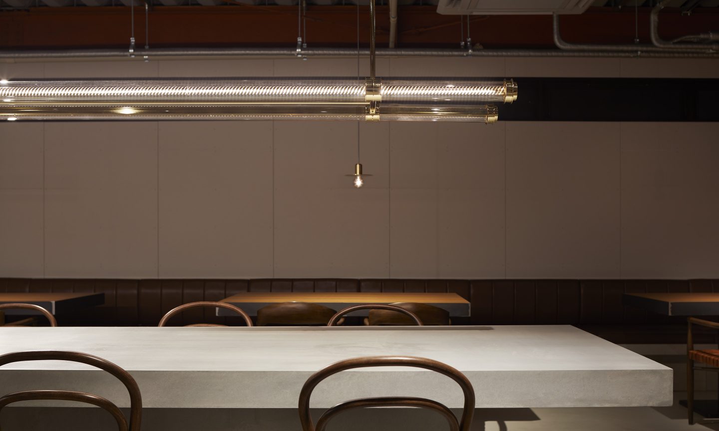 ファッションや食は、価格や見栄え、味付けなど手を多く加えることで魅力を出すことが多い。しかし、最終的には生地や食材そのものの素材の良さを引き出すことで価値観や魅力を得ることにたどり着く。それと同様に、建築では質感や素材感を消した仕上げをして均質になるように手を加えたものが多いが、ここでは徹底的に素地の材料を扱い、割付や素材のもつ質感にこだわることで、空間のもつ本来の魅力や豊かさを引き出した。すでに素材が持っている色を活かすことが、結果として商品を活かす場所となった。
